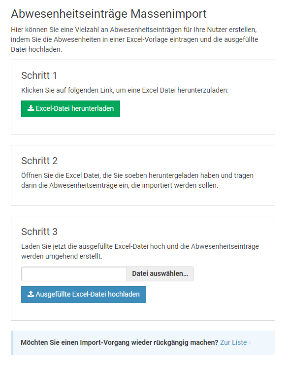 Screenshot: Massenimport von Abwesenheitseinträgen