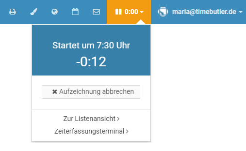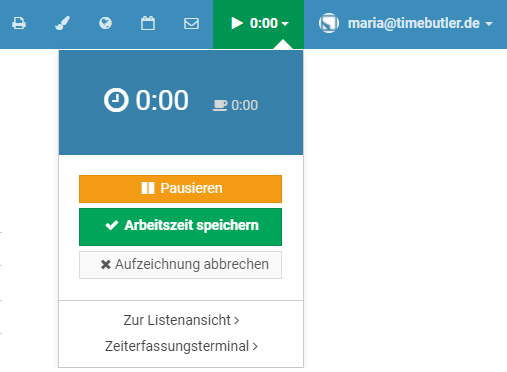 Sobald das Nutzerkonto gelöscht wurde, können Sie sich am Timebutler anmelden und ein neues Nutzerkonto mit der gewünschten Email-Adresse erstellen.