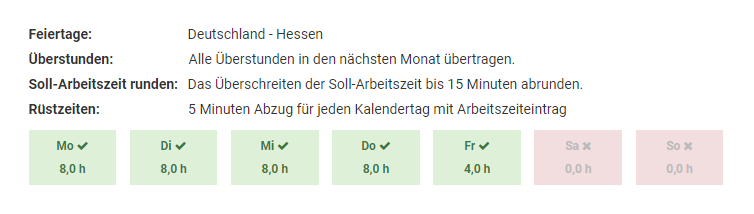 Zuschläge für die Arbeitszeiten (Feiertage, Wochenende, Nachtzuschlag) können zurzeit noch nicht eingestellt werden.